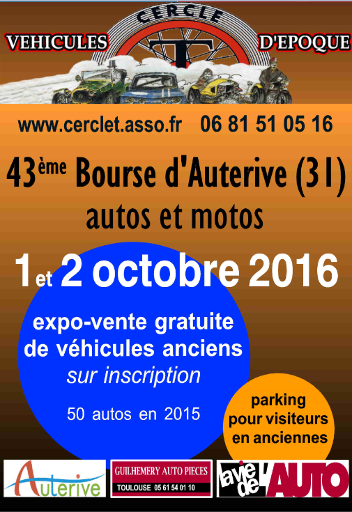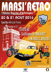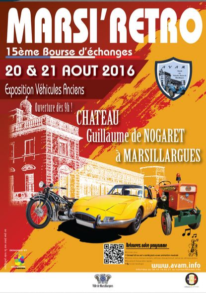 Pour la quinzième année consécutive, l'AVAM organise une bourse d'échanges & exposition de véhicules anciens qui se tiendra sur le site du prestigieux château Guillaume de Nogaret, à Marsillargues (Hérault, 34).