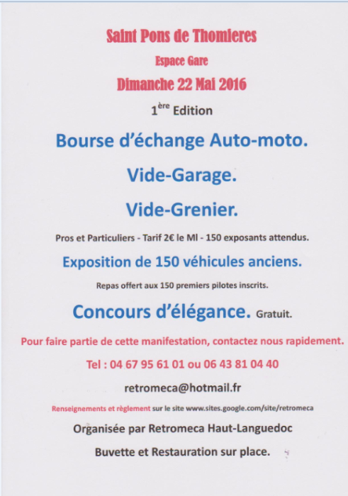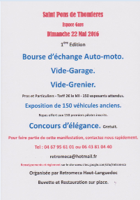 RENDEZ VOUS MENSUEL A CAPESTANG (34) HERAULT LE 24 AVRIL 2016