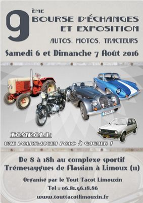 Autos et motos de collection, tracteurs anciens. Bourse de pièces et de miniatures. Balade à 10h. Bourse de pièces et miniatures.