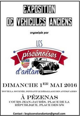Toute la journée pendant le débalage des antiquaires exposition de véhiculs ancien, cours Jean Jaurès, place de la république, place des 3/6. N'hésitez pas à venir exposer votre véhicule en ayant au préalable contacter le club des Piscenoises d 'Antan.