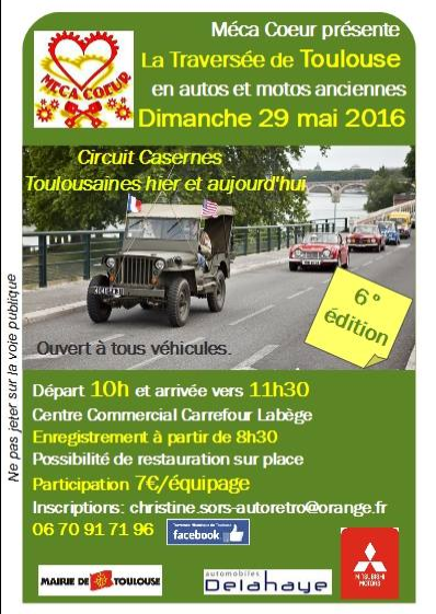 Les propriétaires sont invités à exposer leur voiture (ou moto) à partir de 9h30 (ou avant) et si possible ne pas quitter l'exposition avant 17h.